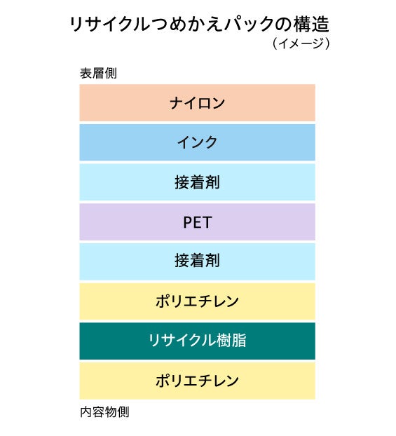 水平リサイクルにより、再生材料を一部に使用したつめかえパックを初めて製品化