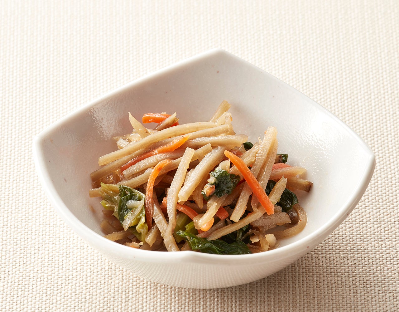 ごぼう、にんじん、ねぎを柚子風味で上品に仕上げたきんぴら。