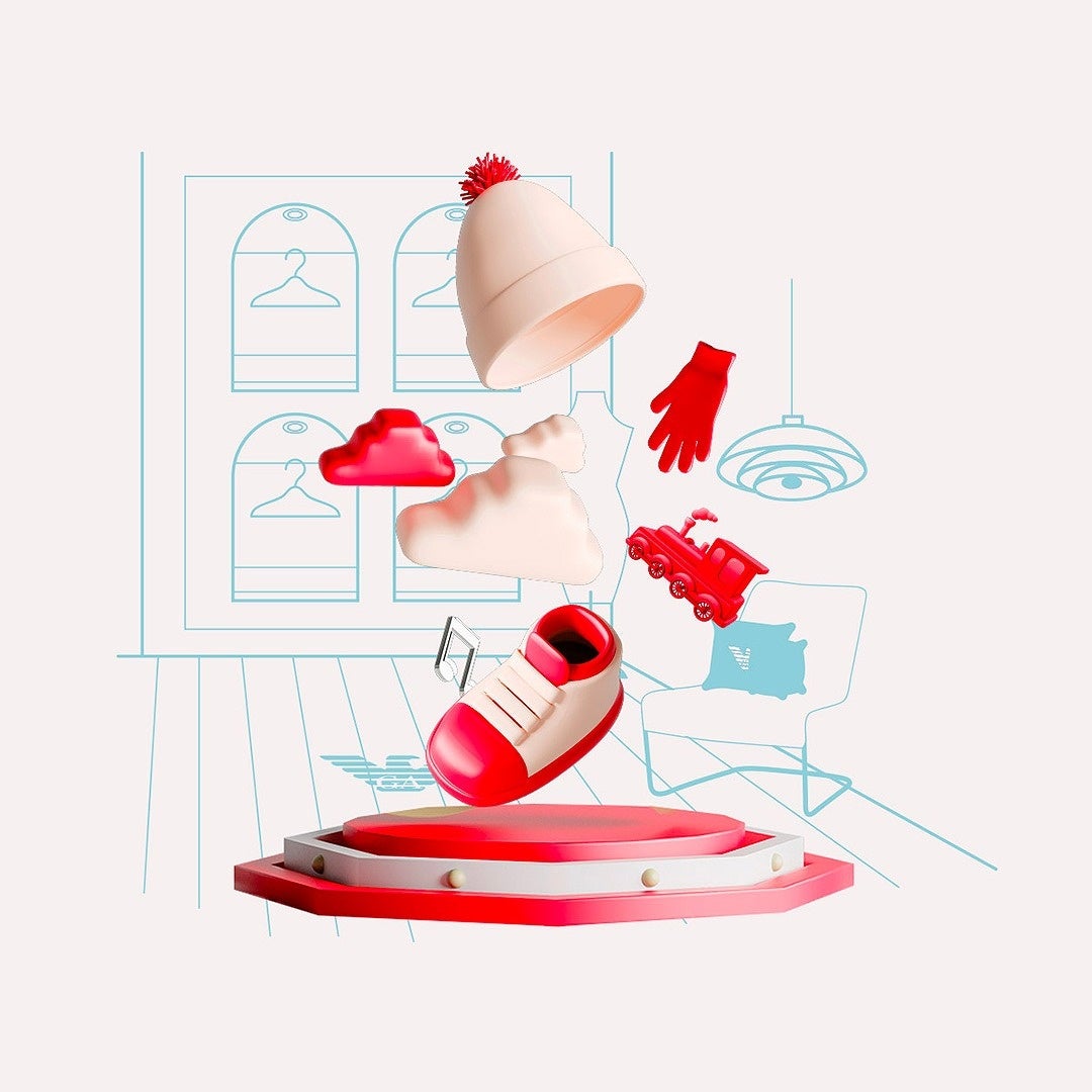 クリスマスギフトのために作られた専用ページ ”GLOWTOWN” を 開くと、ミラノの街が現れます。そこにはエンポリオ アルマーニショップ、リストランテ、カフェ、そしてシーロス(美術館)など、アルマーニゆかりの場所を見つけることができます。行きたい場所をクリックすると雪が舞い落ち、目的地のバーチャル空間が展開されます。中でもひと際目を引くイーグルロゴがデザインされたお店「THE EMPORIO」では、ここを訪れる誰もが、バーチャルモールでショッピングを楽しむことができます。8つのセクションにからなるこちらのモールはメンズ、 ウィメンズ、ウォッチなどのギフトアイテムが展開される、この時期限定の夢のバーチャルショップ。大切な人に想いを馳せながら、楽しくギフトセレクトをしてください。