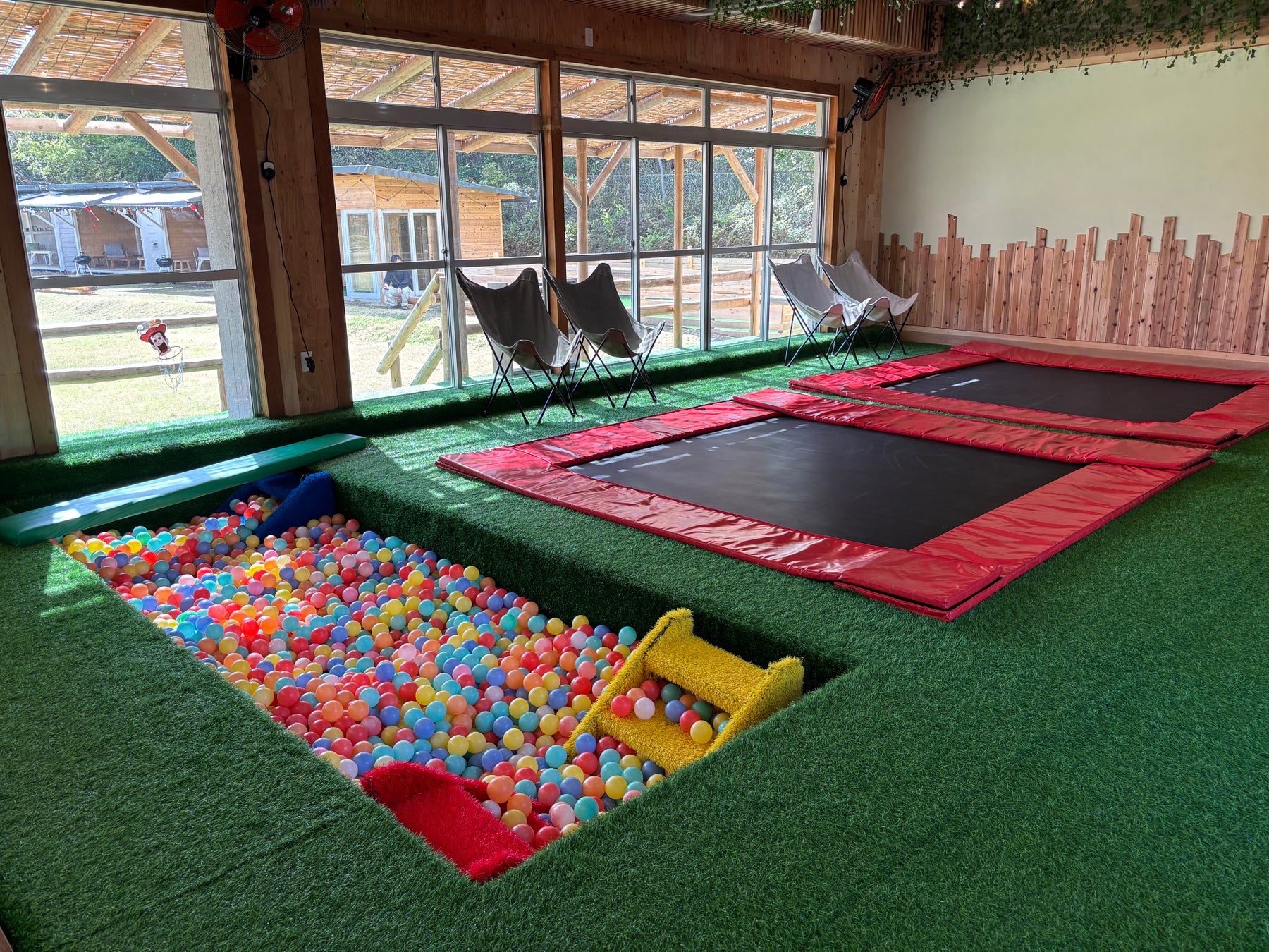 宿泊はもちろん、日帰りBBQ、大型キッズスペース、カフェ、芝生広場など、