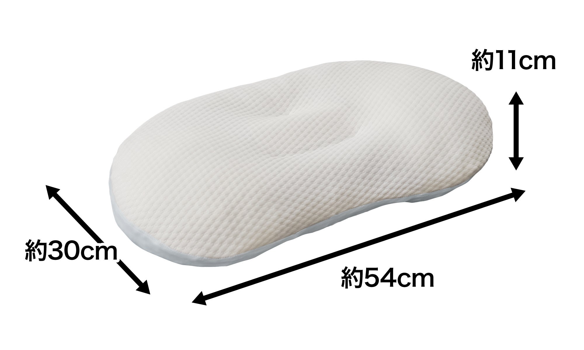 枕本体にある「くぼみ」が頭の位置が安定させてくれます。この「くぼみ」と中材のふんわりやわらかい粒綿が、後頭部の丸みに合わせてフィットします。