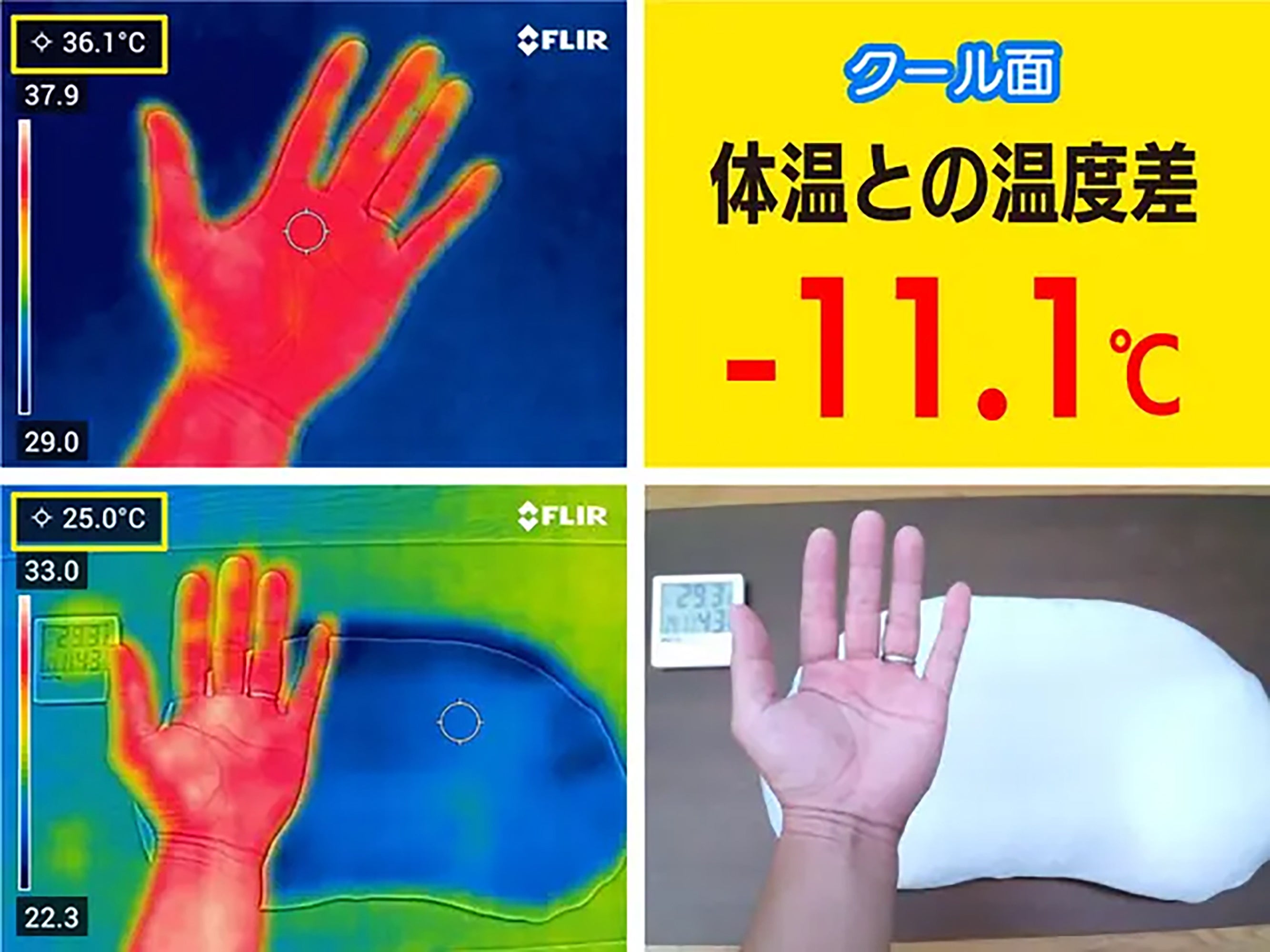 クール面は、ひんやりとした接触冷感で熱帯夜にも爽やかな寝心地をお届けいたします。