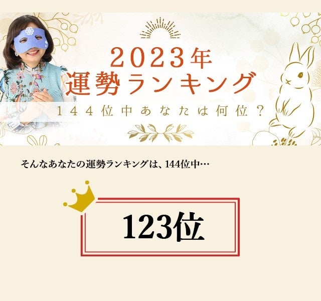 月額公式サイト『水晶玉子 陰陽艶花占』では『水晶玉子が占う 2023年運勢ランキング』を公開しました。2023年、あなたの運勢は144位中何位?
