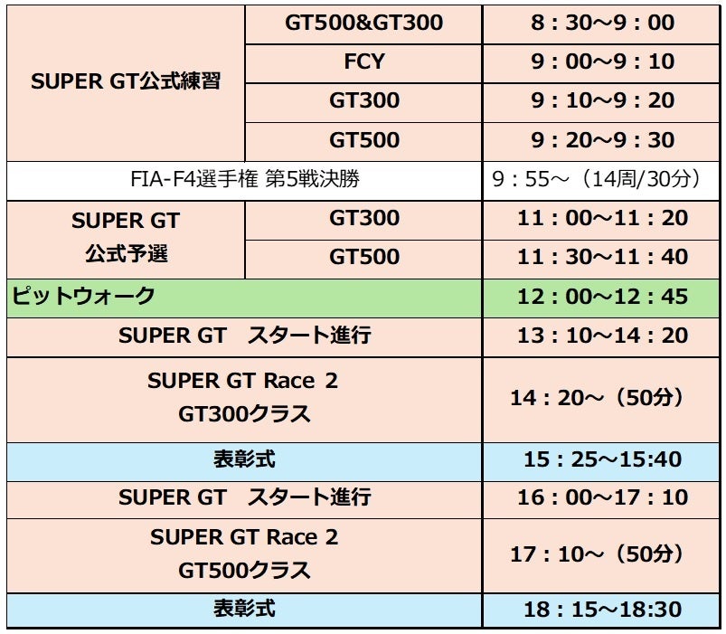 ・土曜日は混走決勝、日曜日はGT300とGT500別走のダブル決勝!