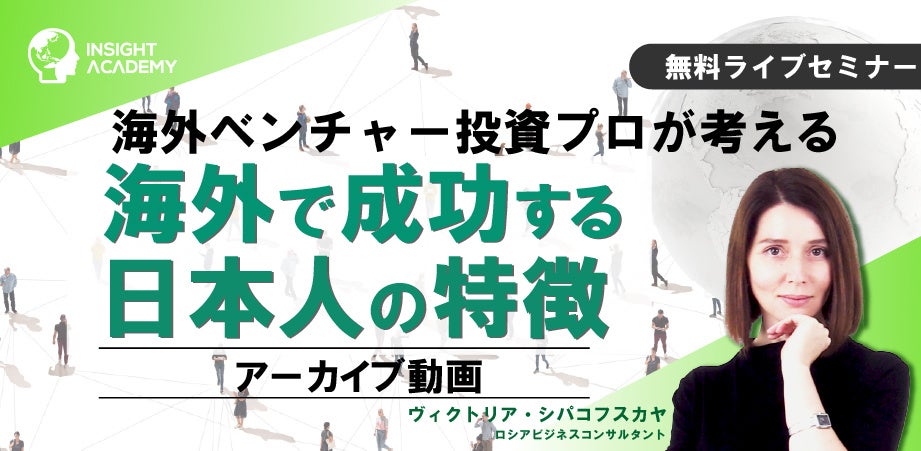 グローバル⼈材育成・研修業を⼿掛けるインサイトアカデミー株式会社(東京都港区新橋、代表取締役:北村嘉章)は、グローバル人材研修のオンラインセミナー「【海外ベンチャー投資プロが考える】海外で成功する日本人の特徴」のアーカイブを無料公開します。