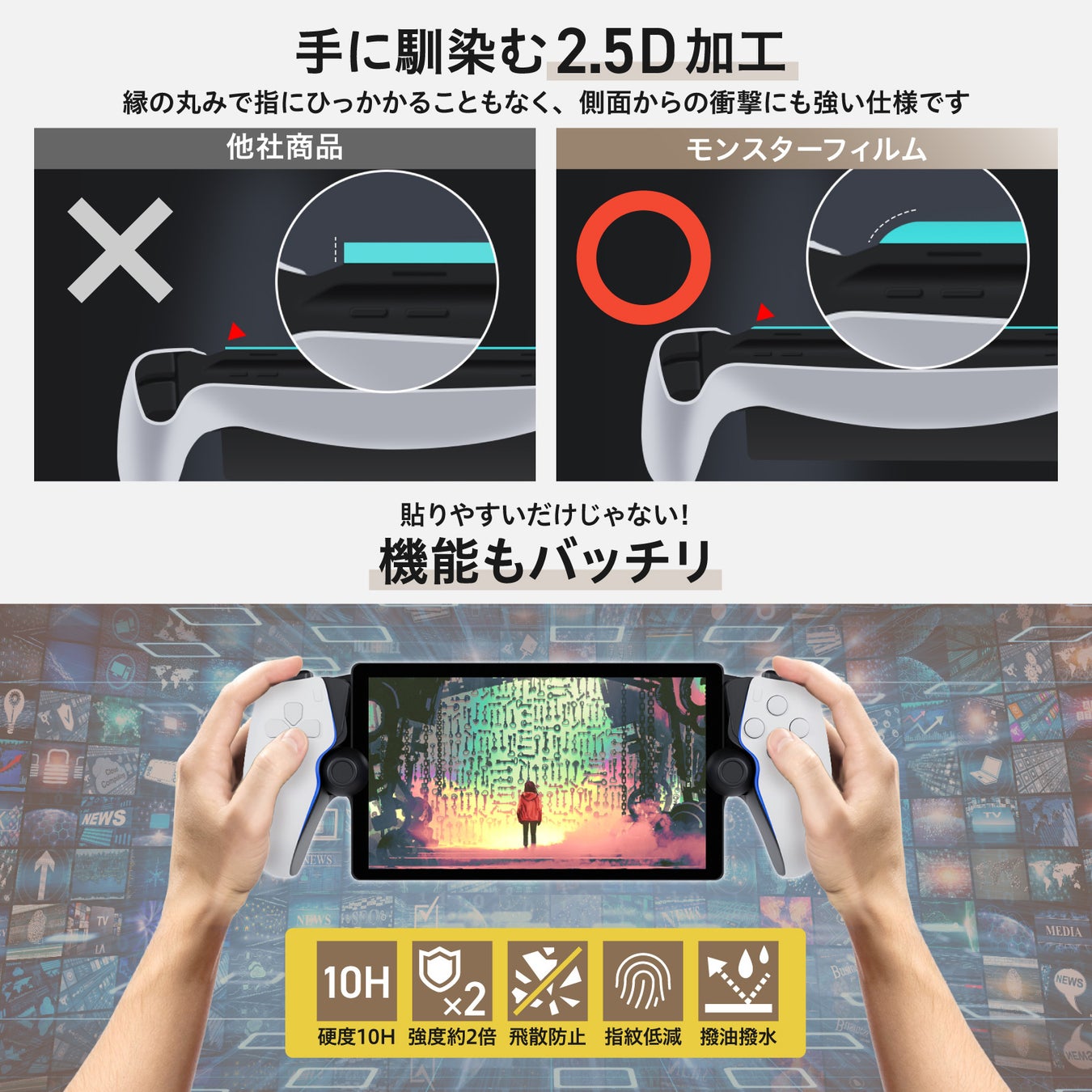 Fun Standard株式会社(本社:福岡県⼤野城市)が展開するモバイルアクセサリーブランド「BELLEMOND(ベルモンド)」より新商品のお知らせです。2024年7月、簡単ガイド枠でお馴染みのモンスターフィルム(Monster Film)シリーズより、PlayStation Portal リモートプレーヤー用が発売されました。PlayStation Portal用モンスターフィルムは、「貼るのが難しい…」「画面に傷がつくのが嫌」「タッチ感度は落としたくない」そんなお悩みを解決する保護フィルムです!「位置合わせ不要のガイド枠-EZguide-」「ピッタリフィットする専用設計」「表面硬度10H ハイアルミニウムガラス」「手に馴染む2.5D加工」プレイステーション ポータルを保護しながら、貼る前と変わらず快適に使用いただけます。プレイステーション ポータルを買ったら必要なもののひとつとして、ぜひモンスターフィルムをお試しください。