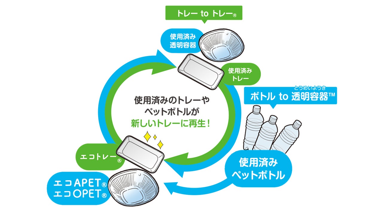※ 「エコAPET容器」、「エコOPET容器」:回収された資源を原料とするPET製のエコ製品
