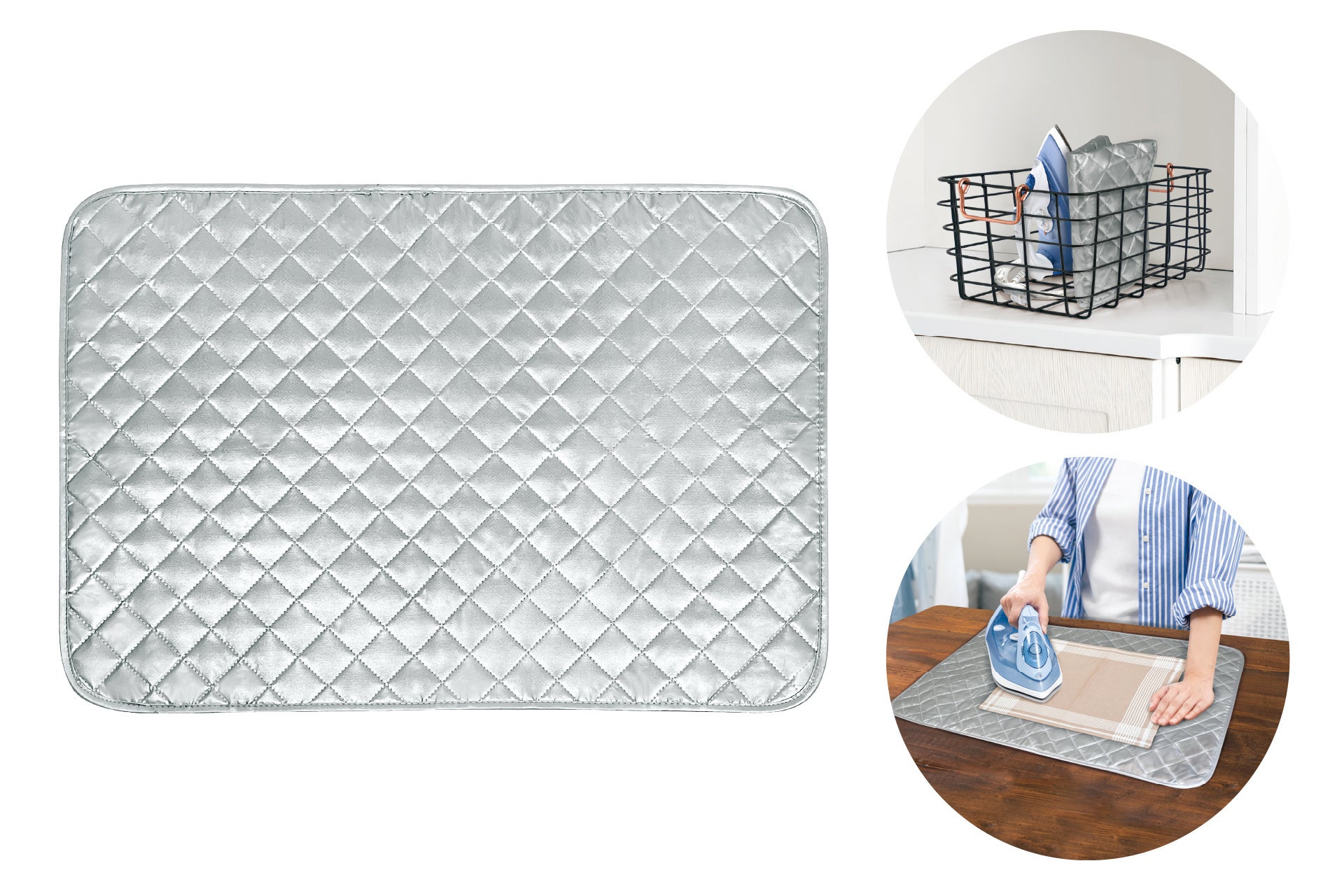 特徴:さっと広げてアイロン掛けができる持ち運びに便利なアイロンマットです。アルミコーティング加工だから、高い熱効果で素早くアイロン仕上げができますよ。テーブルの上に広げるだけで手軽にドライでもスチームでもアイロン掛けが可能。終わったら折りたたんでコンパクト収納!置き場所にも困らず、持ち運びもラクラクです♪