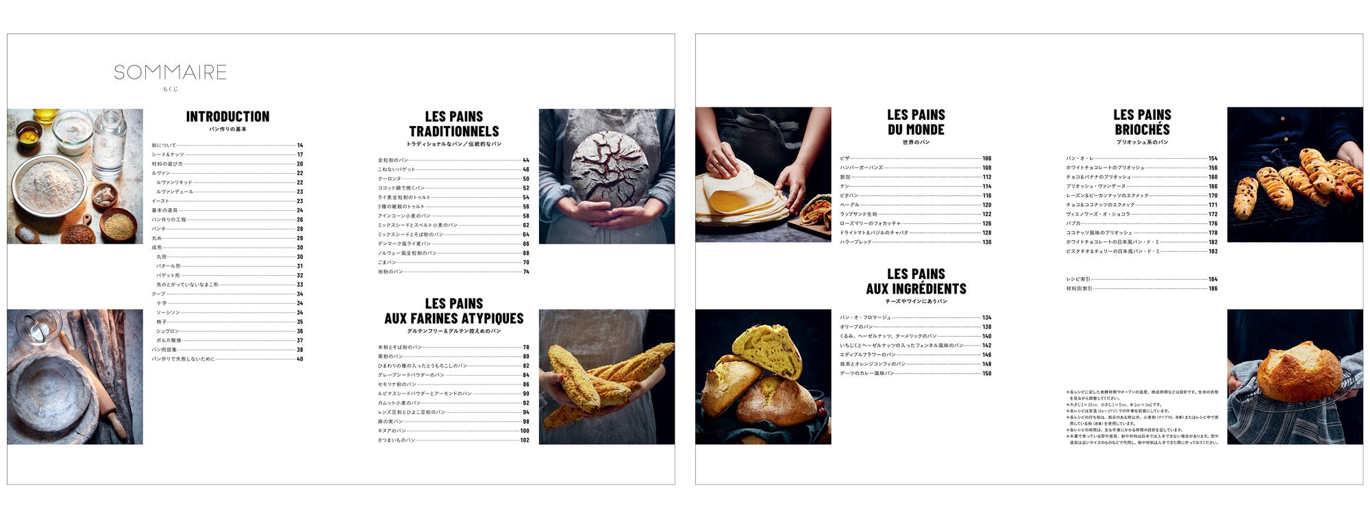 材料や道具など基本を丁寧に紹介し、ポイントは工程写真とともに解説。また、手ごね、機械ごねのどちらにも対応したレシピを掲載しています。驚きとおいしさに満ちたレシピで、本物のパン作りを楽しみましょう!