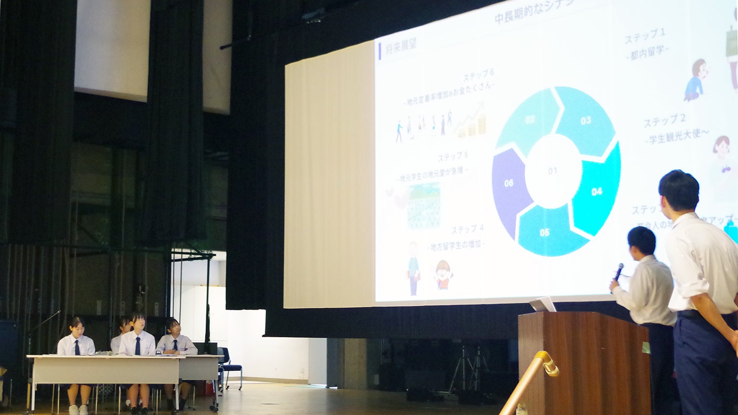 第4回目の実施となる今年度は、志賀高校、鹿西高校、穴水高校、門前高校、能登高校、輪島高校、飯田高校の7校より20名の高校生にご参加いただきました。5月に初回授業をオンデマンドにて配信、6月から本プログラムメンバーによる授業を開始し、7月中旬にかけて高校生の手で実際に事業構想計画書を作成しました。選考会にて優れた計画書を作成したチームを各高校より選考しました。代表チームは、7月29日(月)~8月1日(木)の4日間、当社グループ及びその他企業で働く社会人と共にフィールドワーク、議論などを通じて事業計画書を作り上げました。最終日の8月1日(木)事業計画発表会にて、当社取締役の岩城 慶太郎をはじめ5名の審査員及び関係者の前でプレゼンテーションを行いました。