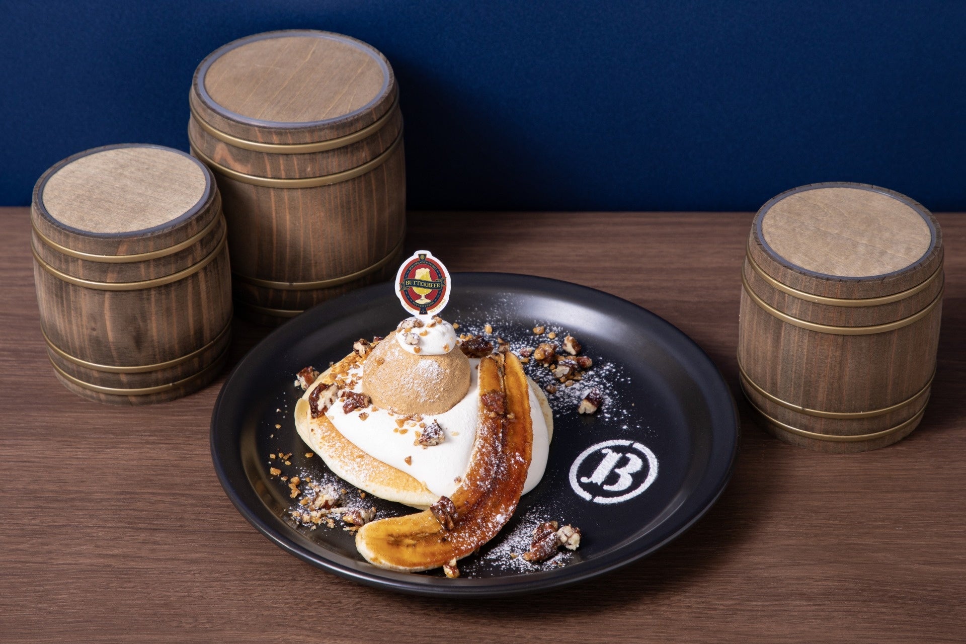 メープルシロップを合わせたふわっとしたクリームとバタービール風味のアイスがのったパンケーキ。