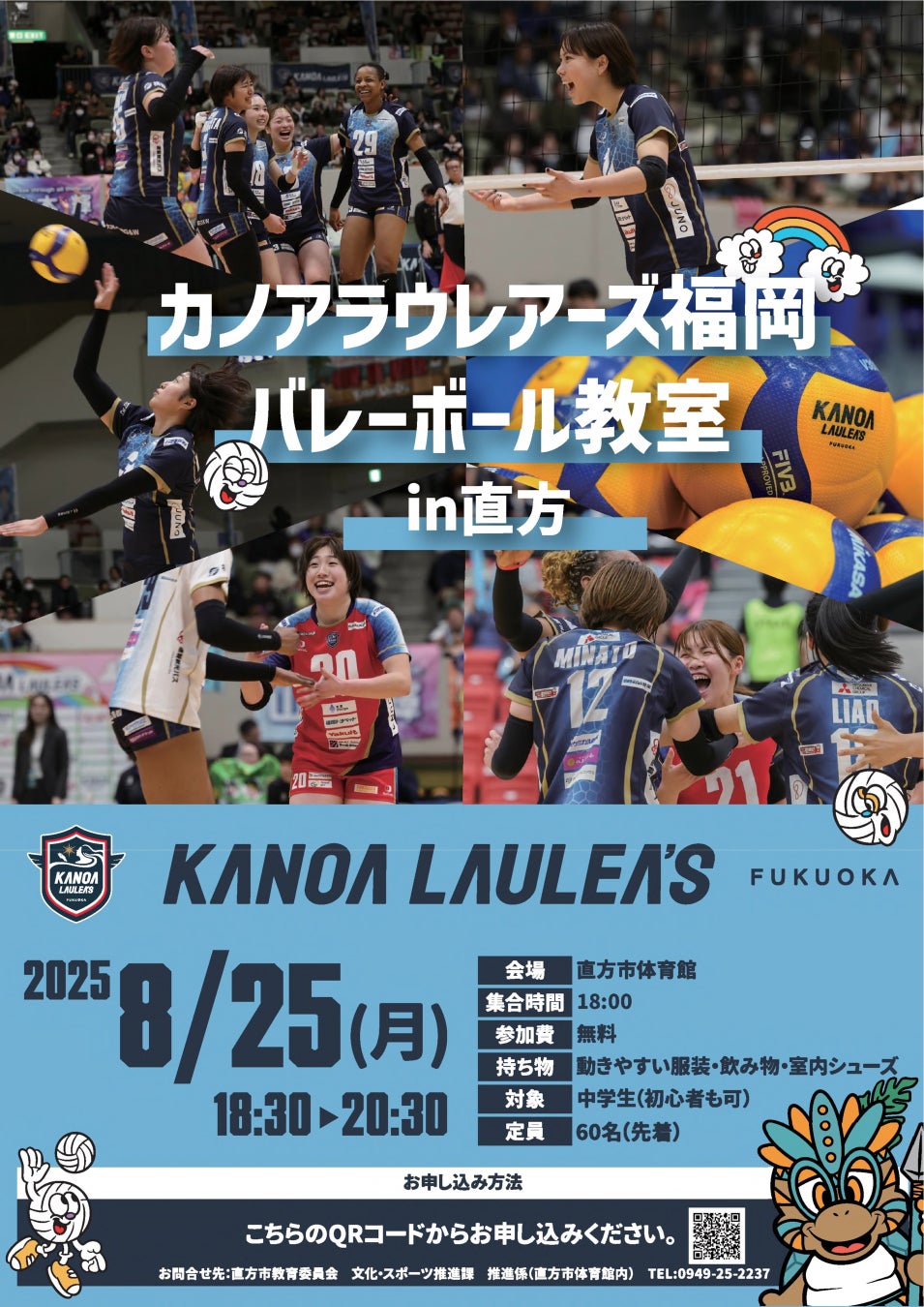 直方市では、プロバレーボールチーム「カノアラウレアーズ福岡」に所属する現役選手2名による特別バレー教室を開催します。指導にあたるのは、チームに所属しながら地域おこし協力隊としても活動している宮地佳乃選手と、もう一名の現役Vリーグ選手。地域の未来を担う中学生たちに、プロの技術と心構えを直接伝えることで、競技スキルの向上とスポーツへの意欲向上を目的としています。基本技術から実践的な動きまで、丁寧な指導を行います。また、選手によるデモンストレーションも予定しており、迫力あるプレーを間近で体感できる貴重な機会です。
