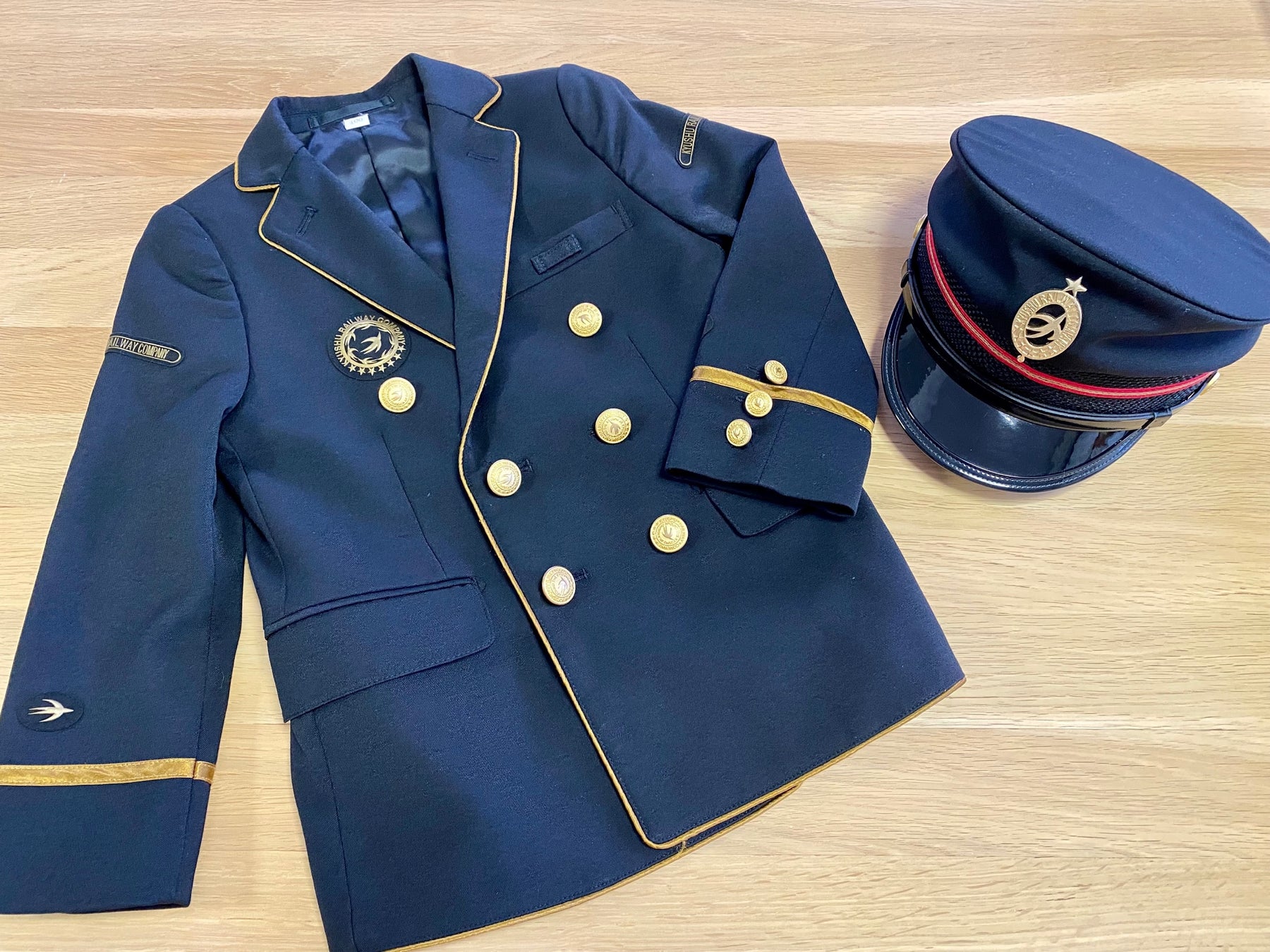JR西日本・JR九州のお子さま向け駅長制服と制帽をご用意!会場中央の「西九州開店」特大のれんをバックにぜひ写真撮影をお楽しみください。
