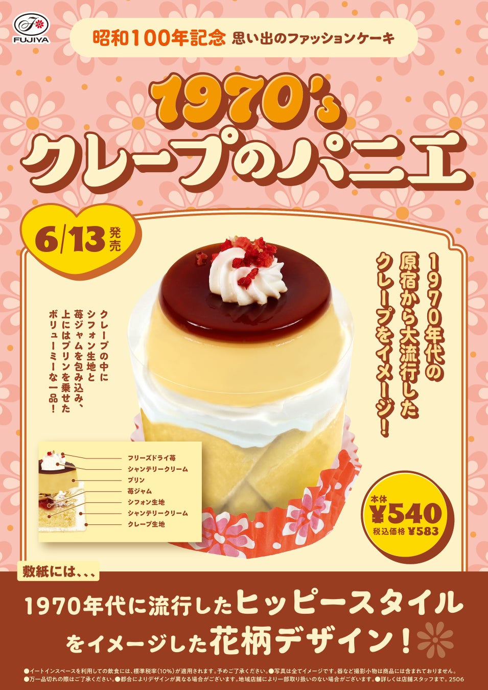 2025年は昭和100年 時代を彩るケーキを発売! 不二家洋菓子店「昭和100年記念 思い出のファッションケーキ」企画第2弾「1970's クレープのパニエ」