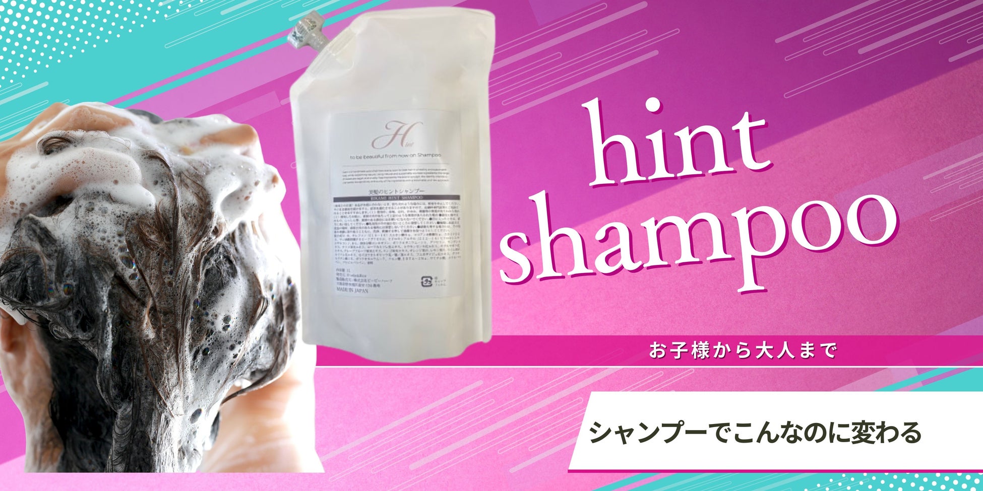 hintは、毛髪診断士が開発した日本製ナチュラルヘアケアブランド。家族みんなで安心して使える自然由来処方にこだわり、髪と頭皮を健やかに整えます。