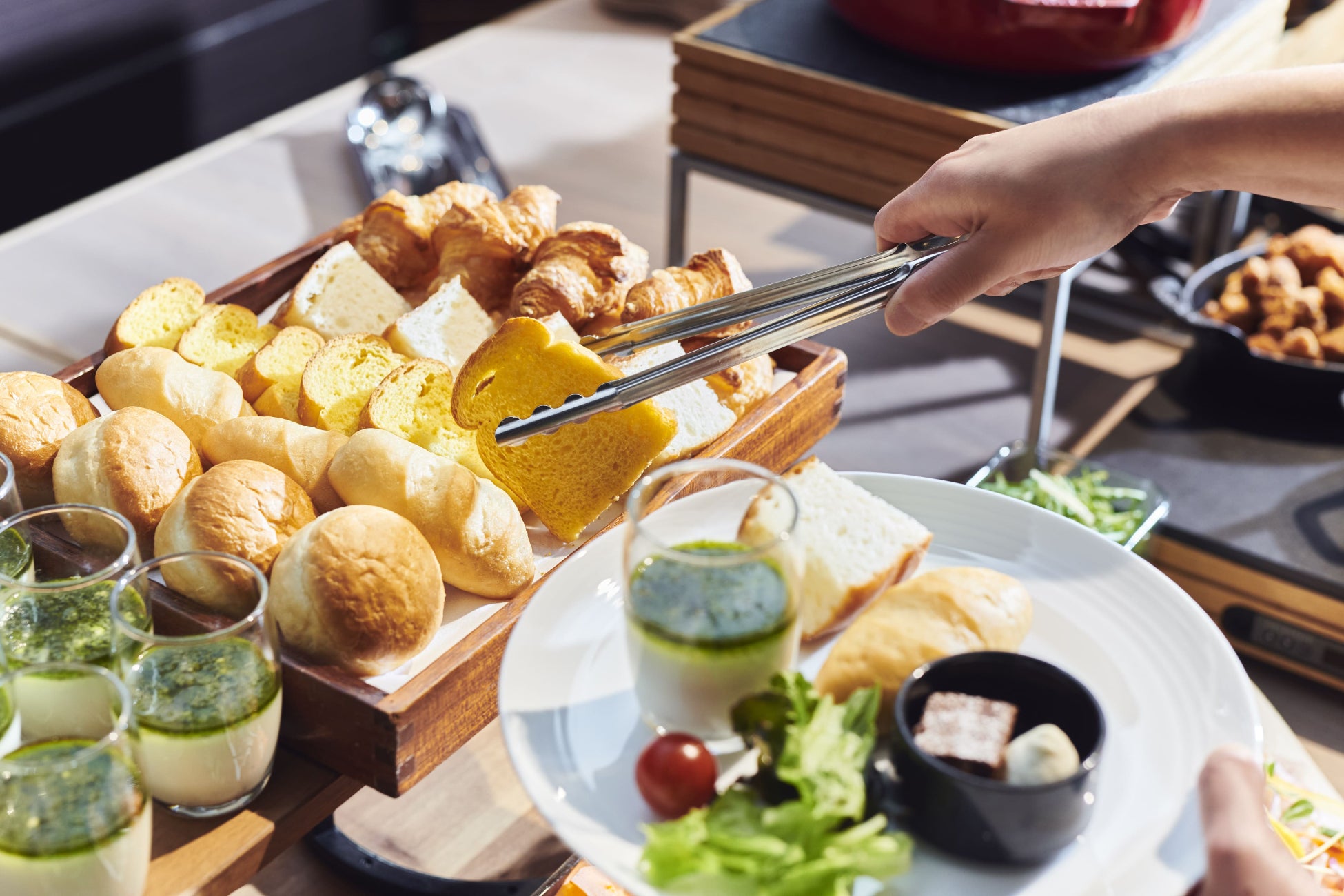 彩り豊かな野菜と、和洋食を中心とした約60品が揃うメニューからお好きなものをご自由にお取りいただくスタイルです。スープカレーや日替わりでホッケフライ、ちゃんちゃん焼き、ザンギなどの地元食満載の朝食ビュッフェ。シェフパティシエが腕を振るうデザートもお楽しみいただけます。