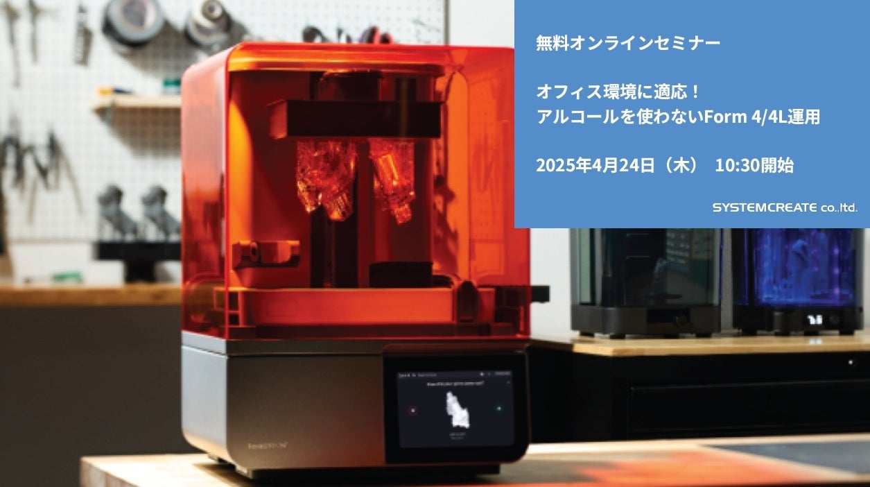 世界のものづくりツールの販売を手掛ける総合技術商社、株式会社システムクリエイト(本社:大阪府東大阪市荒本新町、代表:川上正義)は、2025年4月24日(木)10:30に、無料オンラインセミナー「オフィス環境に適応!アルコールを使わないForm 4/4L運用」を開催いたします。
