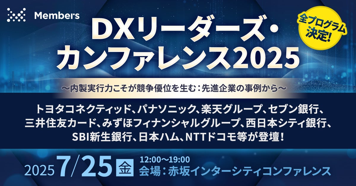 DX現場支援で顧客と共に社会変革をリードする株式会社メンバーズ(本社:東京都中央区、代表取締役社長:髙野 明彦、東証プライム:2130、以下「メンバーズ」)は、2025年7月25日(金)に開催する「DXリーダーズ・カンファレンス2025」の全プログラムが決定したことをお知らせします。