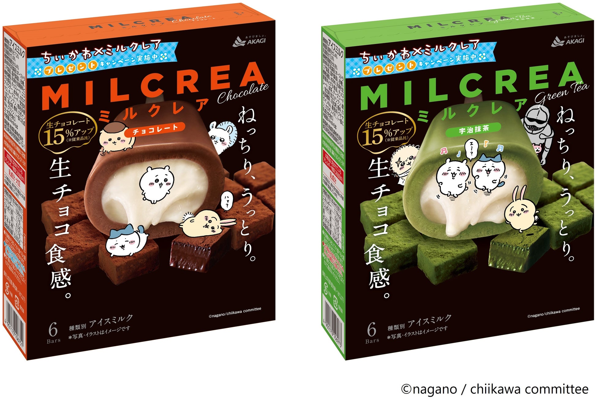 赤城乳業株式会社(本社:埼玉県深谷市、社長:井上創太)は、「MILCREA(ミルクレア) チョコレート」、「MILCREA(ミルクレア) 宇治抹茶」の『ちいかわ』コラボパッケージを2022年8月中旬から数量限定で順次全国発売いたします。