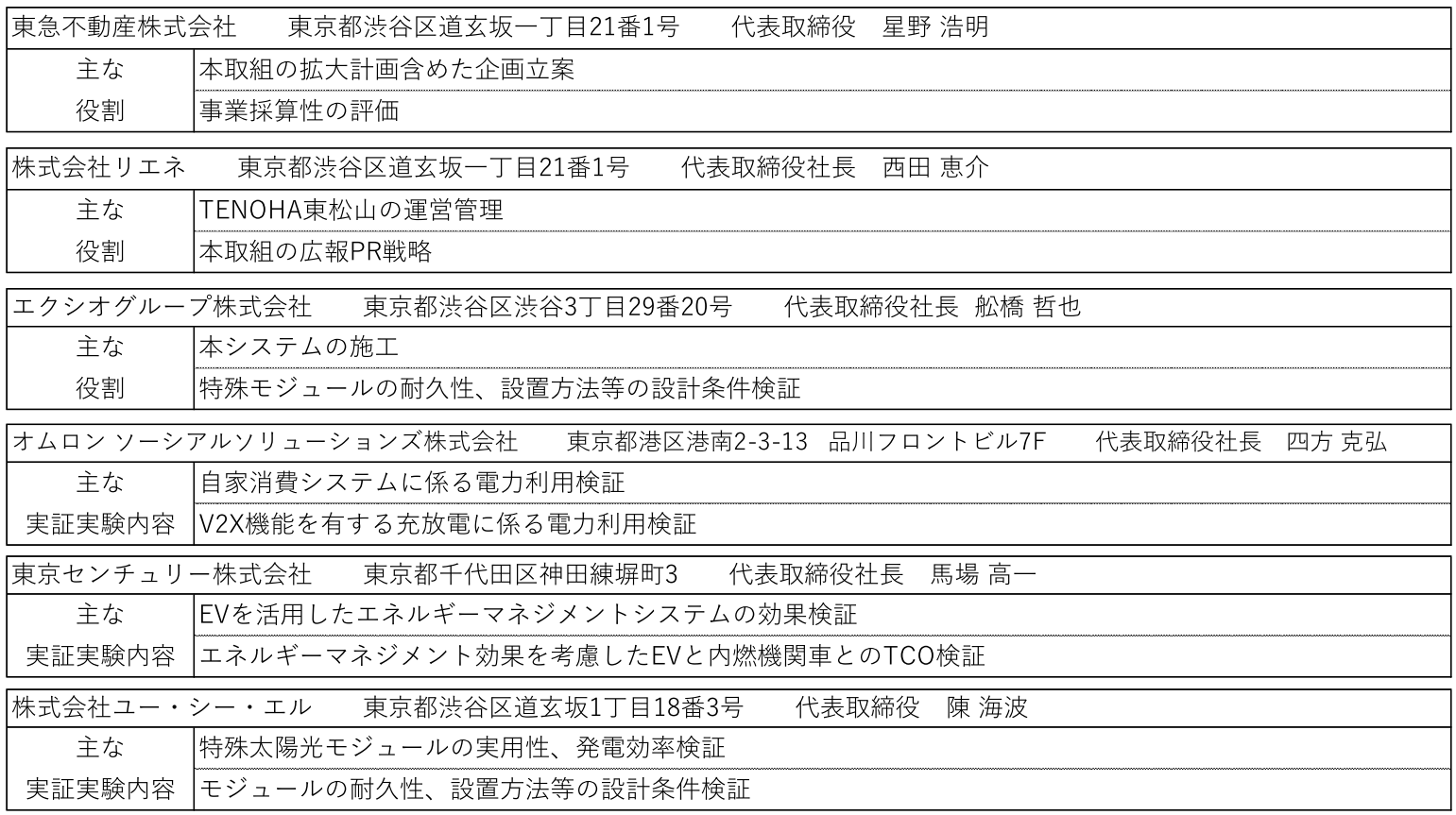 各社の主な役割・実証実験内容