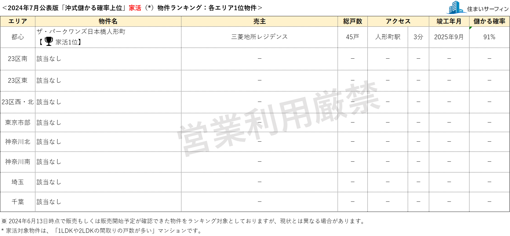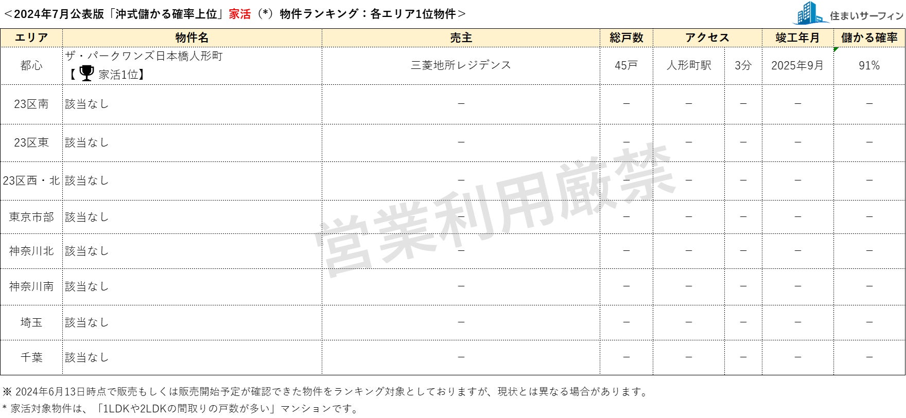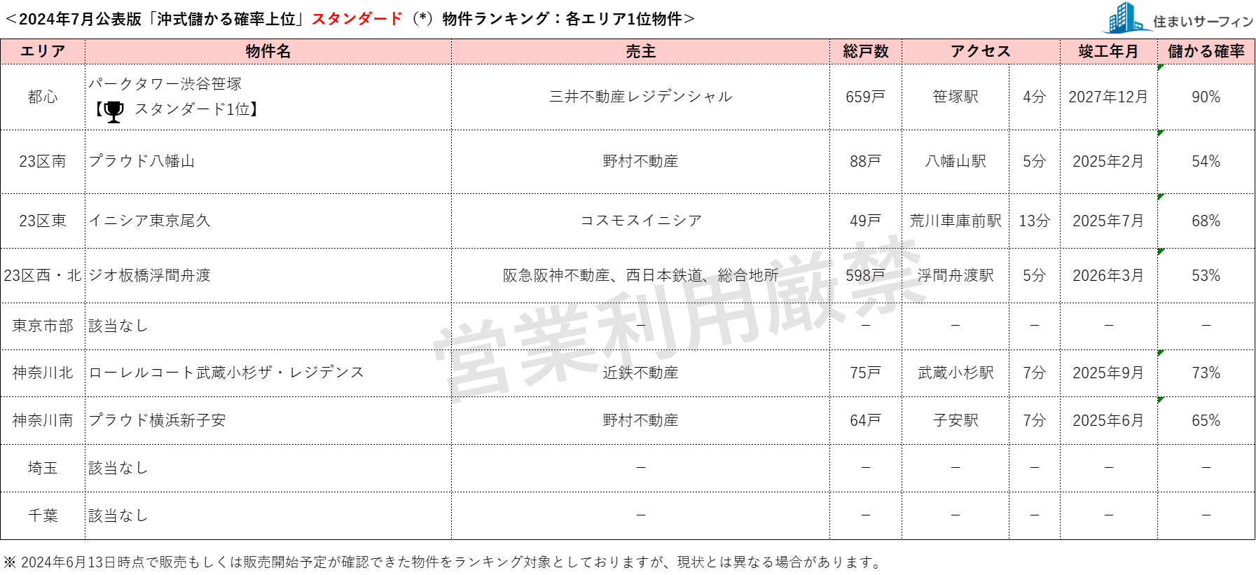 6月公表分は、2024年6月13日時点で販売もしくは販売予定が確認できた物件を対象としています。