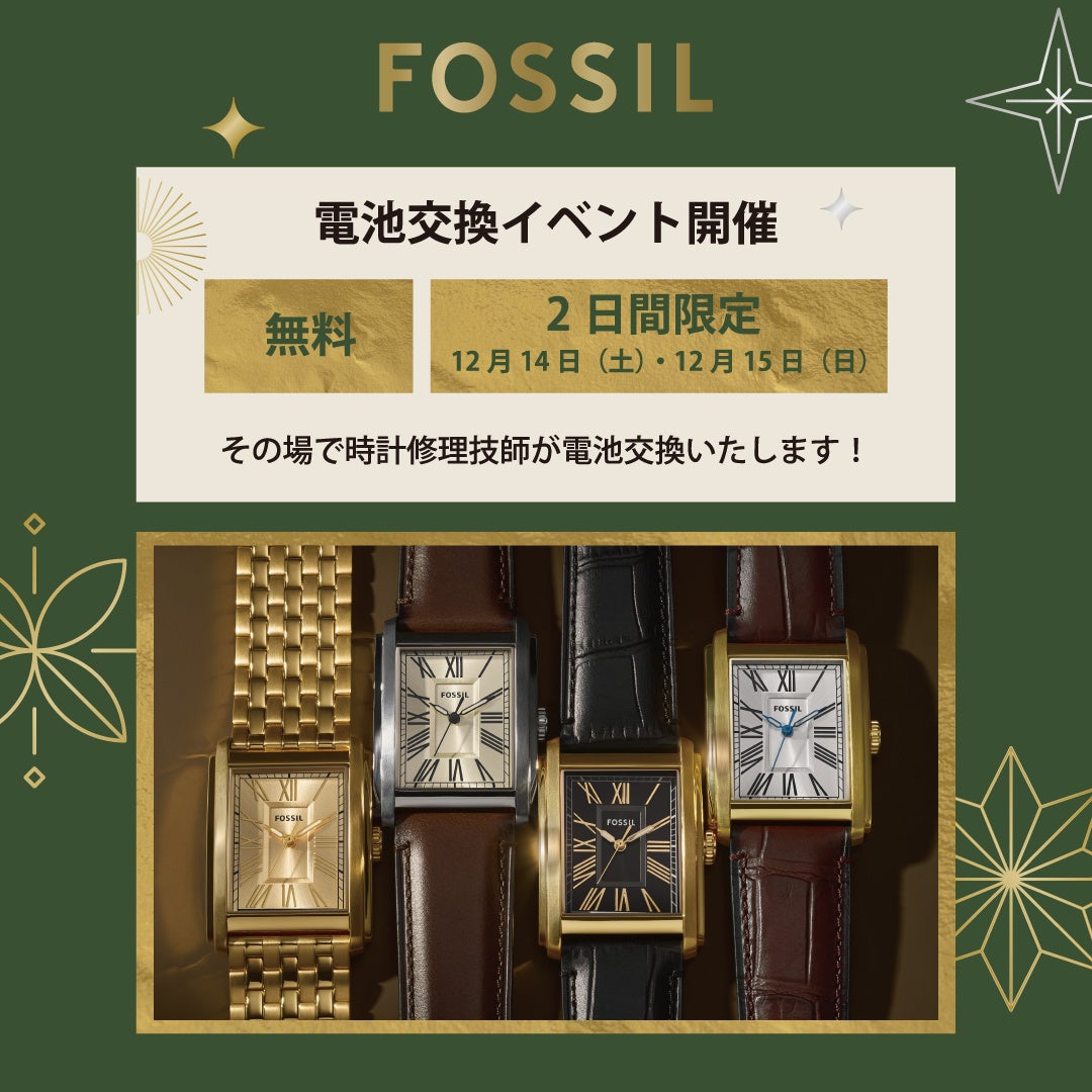 アメリカ・テキサス州に本拠地を持つFossil Group, Inc. の日本現地法人である株式会社フォッシルジャパン(東京都渋谷区、代表取締役社長:アネミック バレスティ)は、FOSSIL / SKAGEN ルクア1100店において、2024年12月14日(土)・12月15日(日)の2日間限定で、「無料電池交換イベント」を開催いたします。