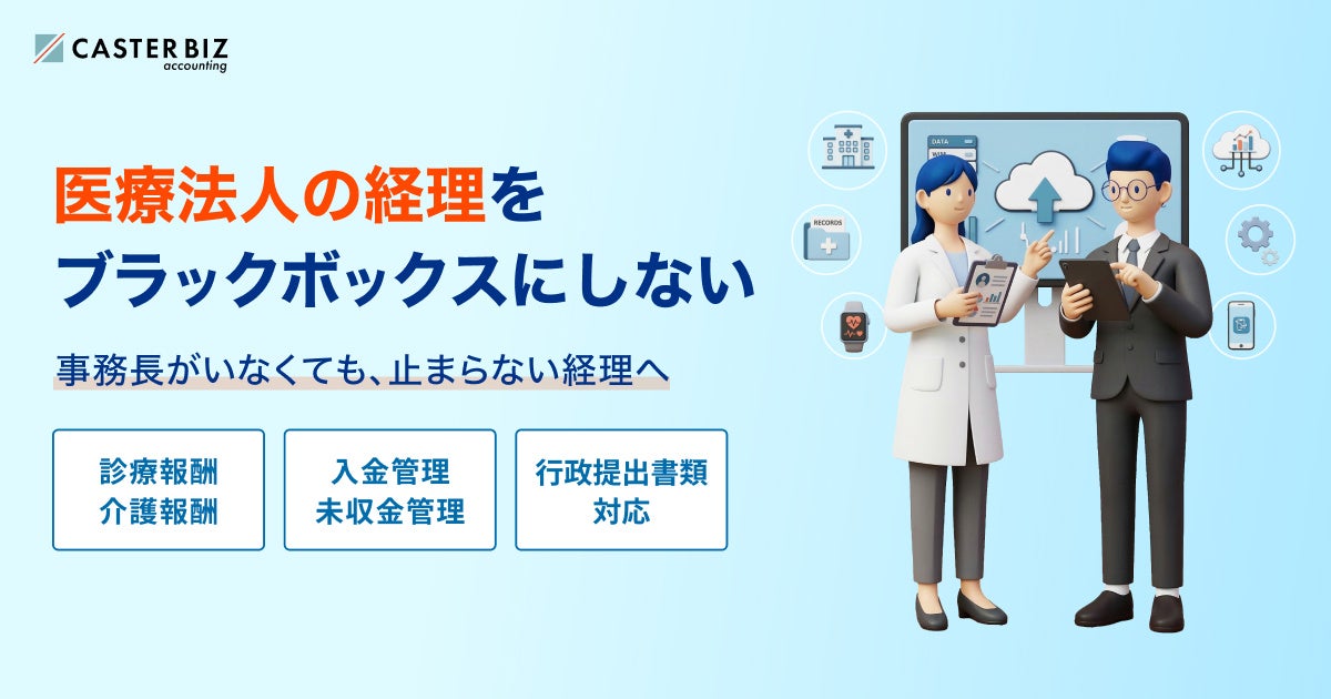 株式会社キャスター(本社:東京都千代田区、代表取締役 中川祥太、以下「キャスター」)は、経理専門オンラインアシスタントサービス「CASTER BIZ accounting」において、医療法人・介護事業者向けの専用プラン「CASTER BIZ accounting for 医療法人」を2026年4月1日より提供開始いたします。