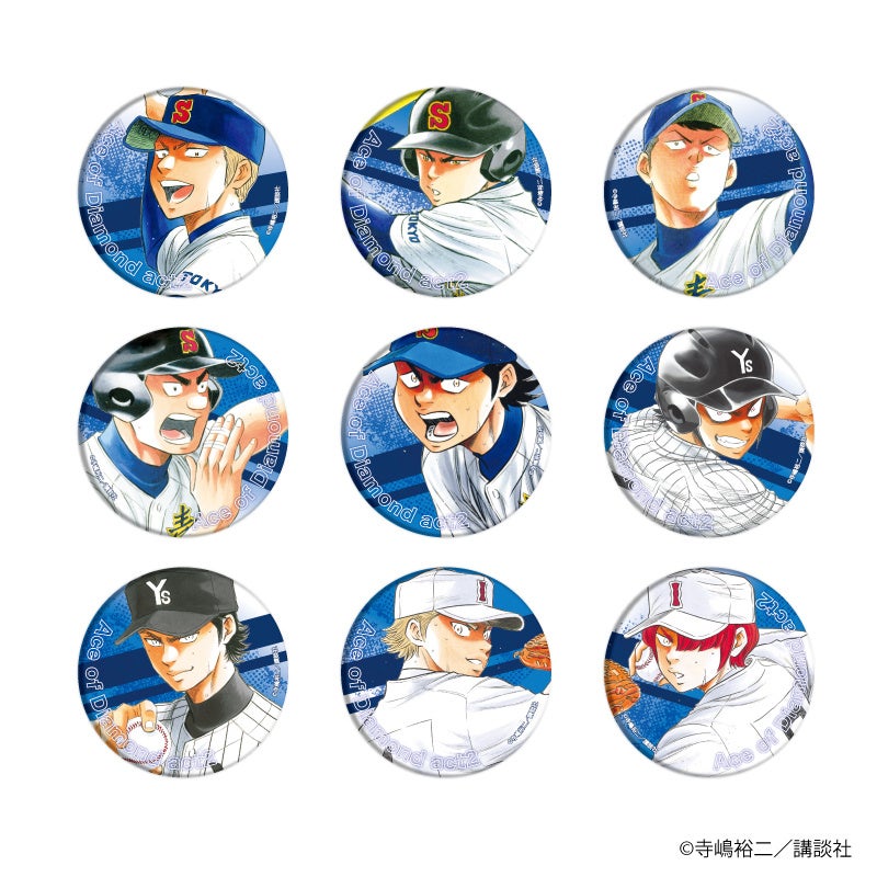 缶バッジには、金丸信二、川上憲史ら青道高校野球部のメンバーだけではなく、薬師高校野球部の真田俊平、稲城実業野球部の成宮 鳴たちライバル校の面々も登場!