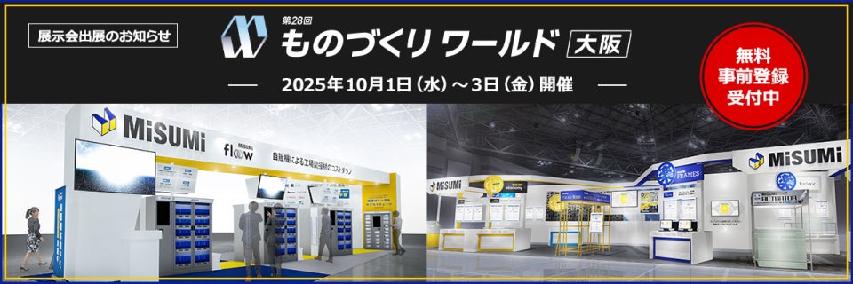 株式会社ミスミグループ本社(本社:東京都千代田区、代表取締役社長:大野龍隆)は、2025年10月1日(水)~3日(金)の3日間、インテックス大阪で開催される「第28回 ものづくり ワールド [大阪]」に出展します。