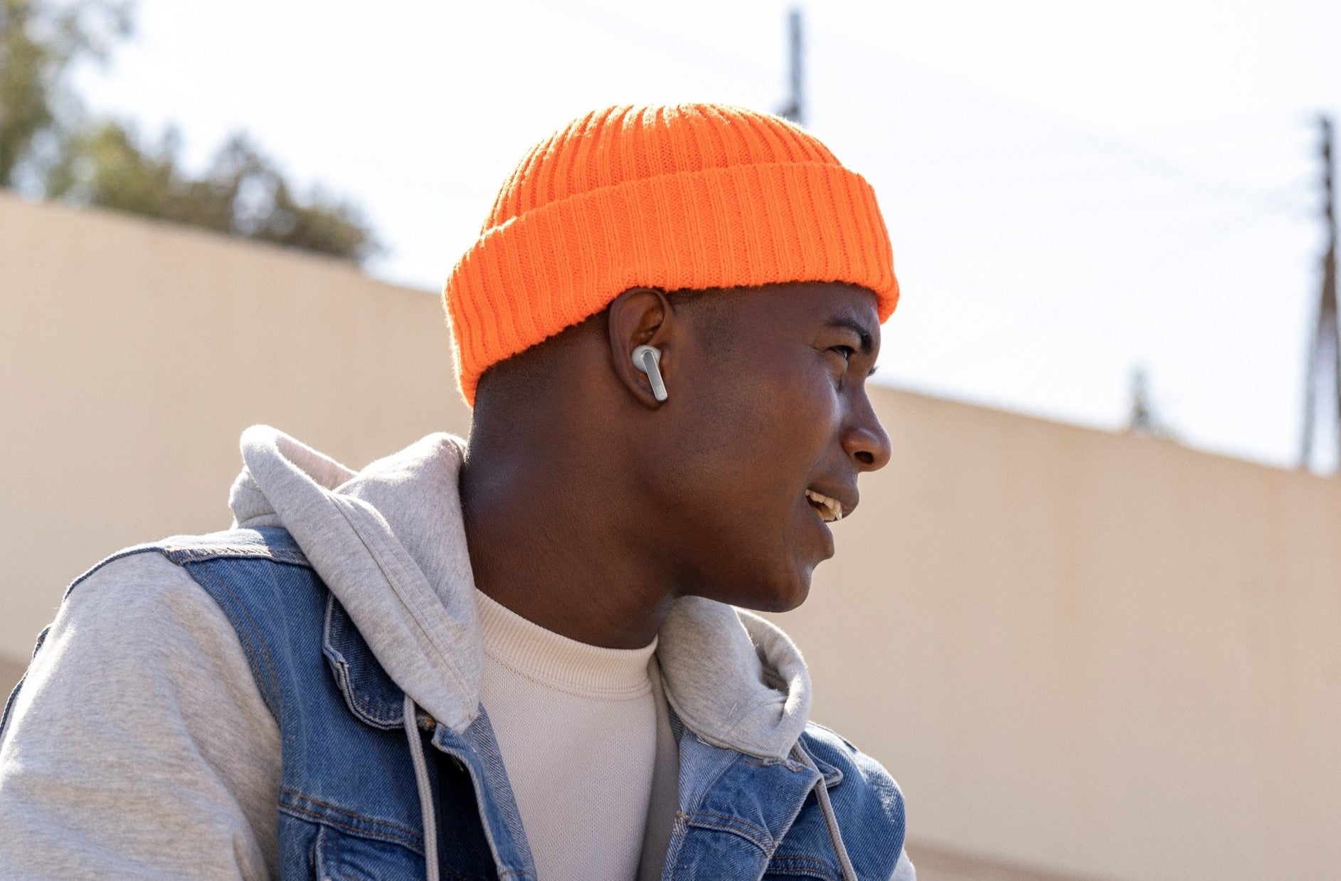 イヤホン本体には、あらゆる環境でクリアな通話を提供するように設計された片側3つずつ合計6つのマイクを搭載しています。また、上位モデルと同じく、外音取り込み機能のアンビエントアウェア、トークスルー機能を装備。外の音を自由に取り込めるため、イヤホンを装着したままでも会話ができ、周囲の状況を簡単に把握できます。さらに、本モデルから初搭載となるボイスアウェア機能を使用すると、イヤホンに戻されるマイク入力の音を制御して、自分の声と周囲の音の量を選択できるようになり、電話中や会議中に自分の声も聞くことができるため、必要以上に大きな声で話すことなく、イヤホンから聞こえる声だけに集中することができます。