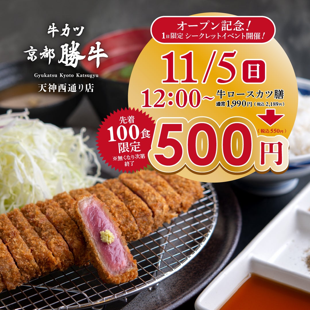 オープン前日となる11月5日(日)に牛カツ膳を100食限定500円(税込550円)で提供します!