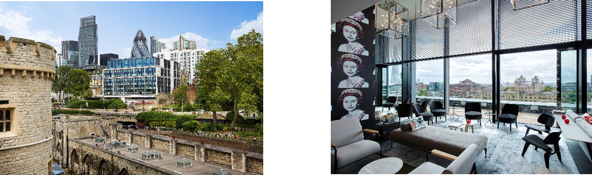 シチズンM タワー オブ ロンドンはロビーや部屋にある大きな窓からロンドン塔やタワーブリッジ、テムズ川を望めることで人気の宿泊施設です。部屋の天井は高く、明るく芸術的な内装が施されています。さらには一部の部屋からはロンドンのスカイラインを眺めることができ、滞在中もロンドンの魅力を存分に味わうことができます。ウォーキングツアーの出発点へ徒歩1分の距離に位置し、ロンドンの歴史を学ぶ旅には最適な場所と言えます。