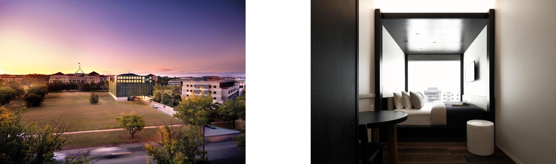 リトル ナショナル ホテル キャンベラは、壁一面が窓になっている広々とした部屋が特徴的なモダンなデザインのホテルです。近くには旧国会議事堂などの文化的名所やオーストラリア国立美術館などがあります。宿泊施設にはライブラリーやラウンジ、バー、ジムも併設されており、おしゃれな雰囲気の中、自分の思いのままの時間を過ごすことができます。