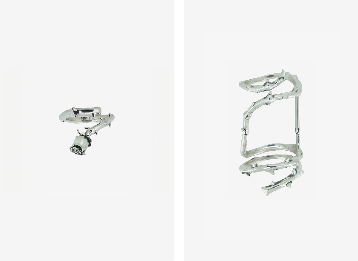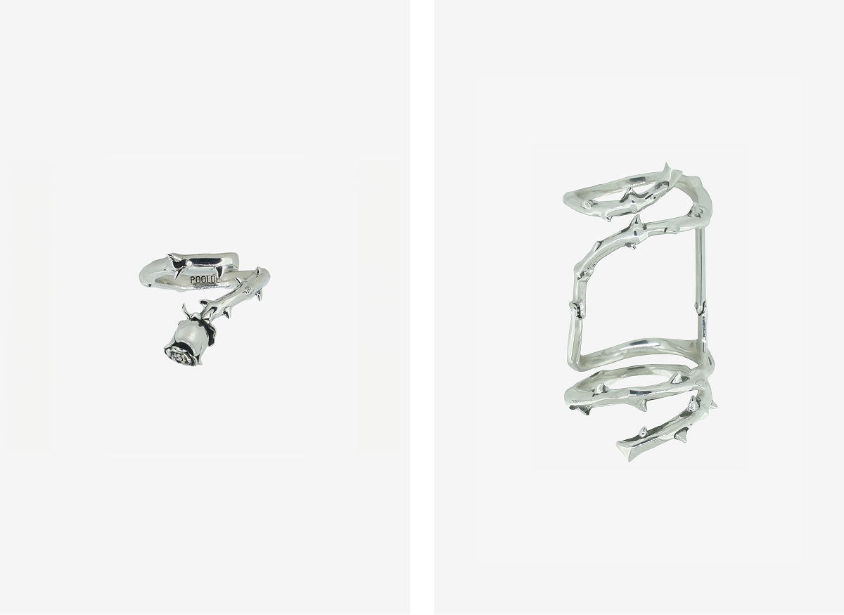 話題の薔薇の蔦が巻き付いたデザインのロマンティックなリングシリーズ。ジュエリーは普段はオーダーのみですが、今回は特別に即購入・お持ち帰りが可能です。