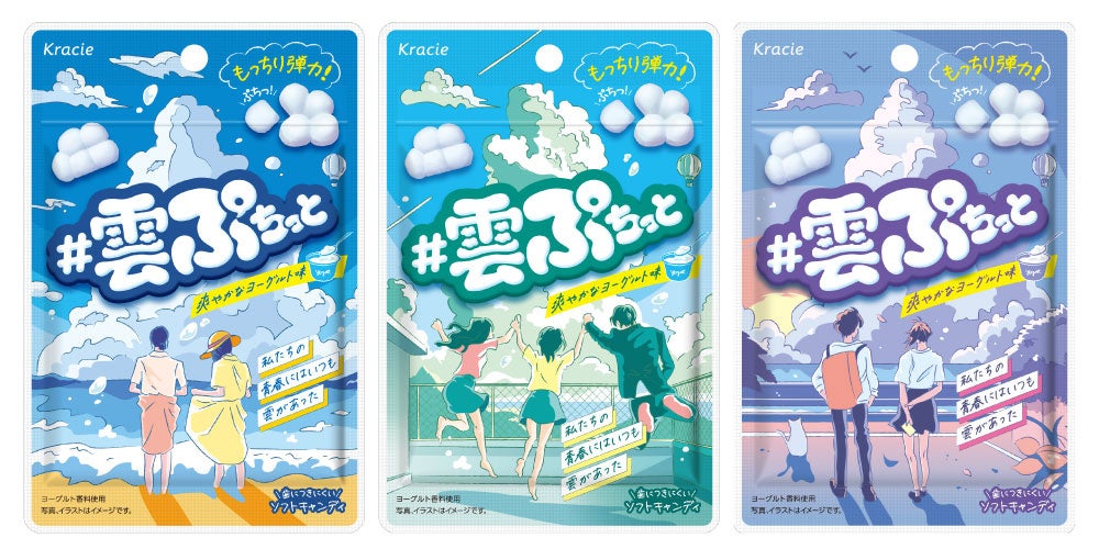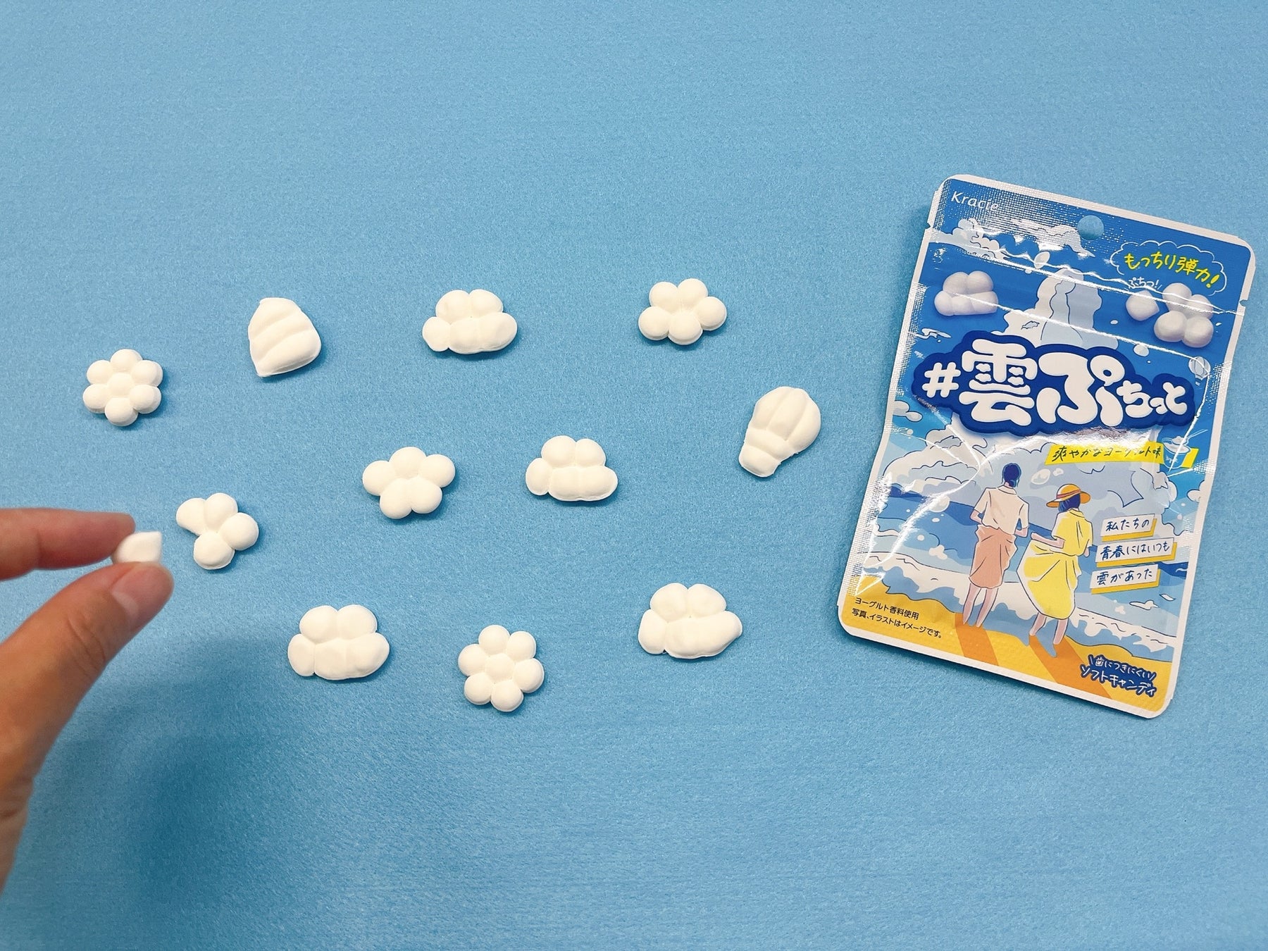 今回発売する「#雲ぷちっと」は、ぷっくりとしたいろんな雲の形が入っています。キャンディは、青春時代に見上げた空にある雲の形をイメージしました。もっちりとした弾力のある食感と、すっきりと酸味のある「爽やかなヨーグルト味」をお楽しみください。