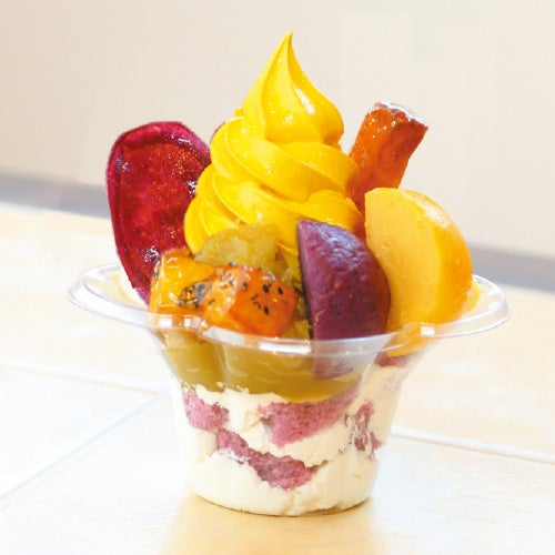 さつまいもを使ったソフトクリームにスイートポテトなどをトッピングした芋好きにはたまらないパフェです。