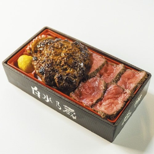 肉々しい100%のあか牛ハンバーグとステーキのお弁当