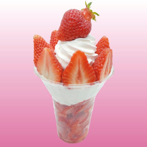 フローズンあまおうスライスの上にあまおうソース,ホイップクリーム,上段にはフレッシュあまおうを盛り付けたあまおう三昧のパフェです。