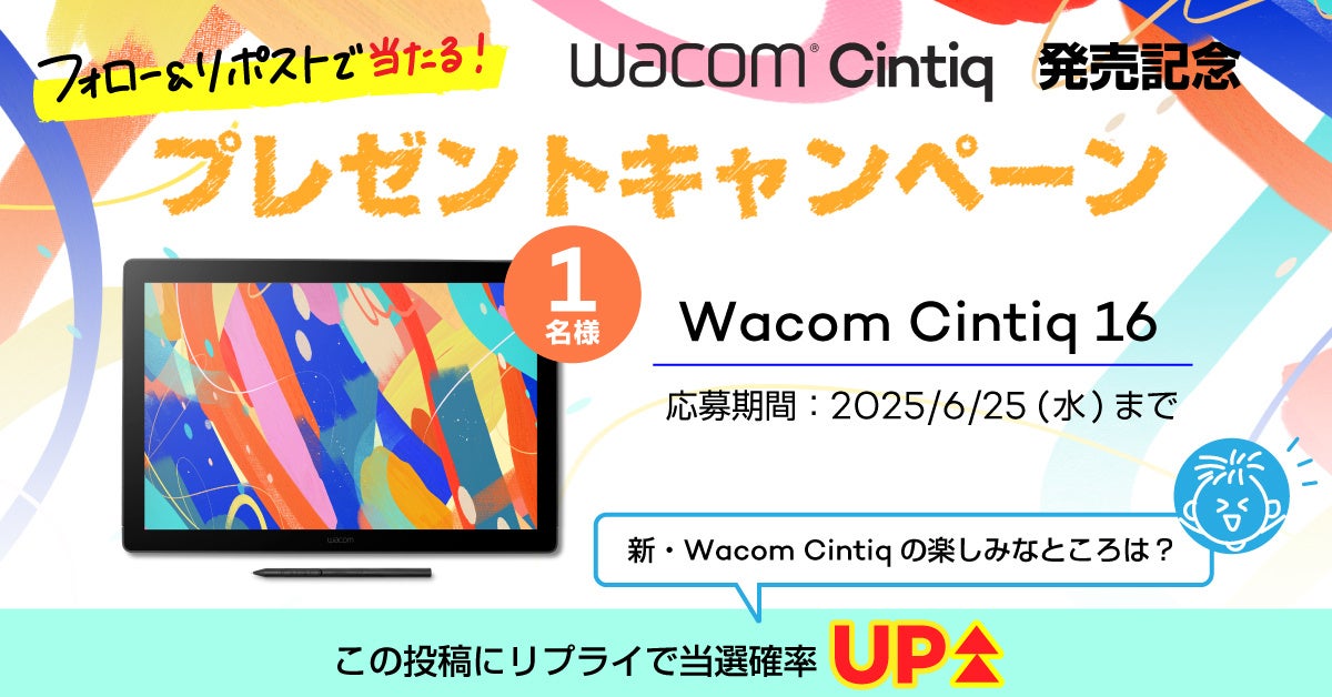 株式会社ワコムは、液晶ペンタブレット「Wacom® Cintiq®」シリーズの新モデル発売を記念し、2025年6月18日(水)より、公式X(旧Twitter)にてプレゼントキャンペーンを実施いたします。