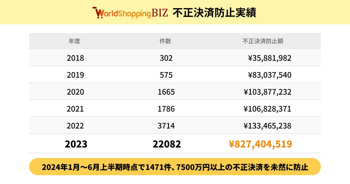 〜WorldShopping BIZ セキュア・ペイメント機能の提供開始から6年半で「累計3万件(12億円相当)」の不正決済を防止〜