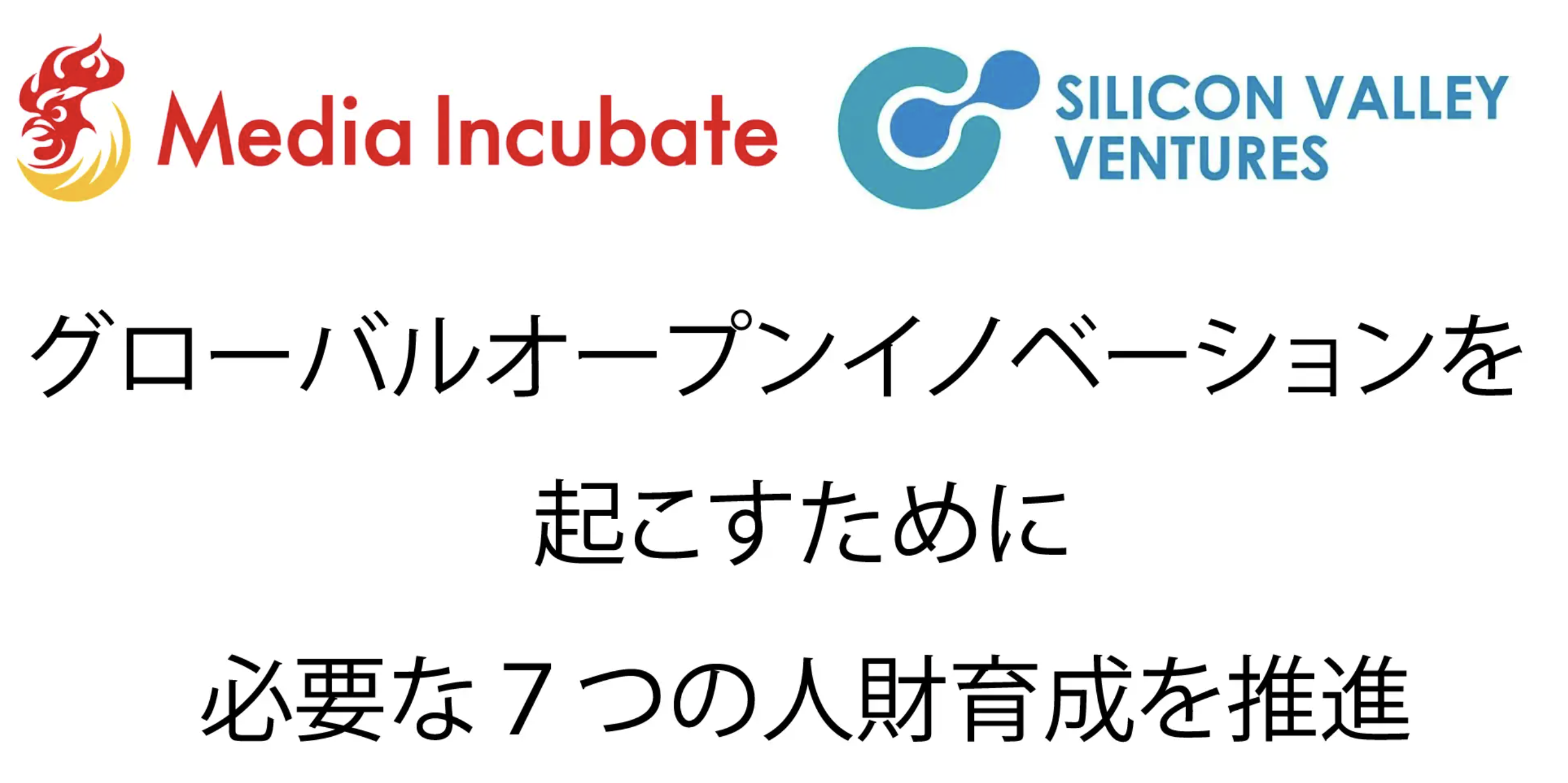 未来を切り拓こうとする方々を応援する株式会社メディアインキュベート(本社:東京都新宿区、代表取締役社⻑:浜崎 正⼰、以下「メディアインキュベート」)は、4月1日(金)、グローバルイノベーション創出を支援する株式会社シリコンバレーベンチャーズ(本社:⼭⼝県下関市、代表取締役社長兼CEO:森若 幸次郎、以下「シリコンバレーベンチャーズ」)と、「グローバルイノベーションをどう起こすか?VUCA時代を生き抜くグローバルイントレプレナー、グローバルアントレプレナーを育成し、ユニコーンを超えるヘクトコーンをどう生み出すのか?幸せな社会をどう作るか徹底議論」と題して、4月6日20時開始で動画配信を実施( https://www.youtube.com/watch?v=hEBewPqk4_E )いたします。