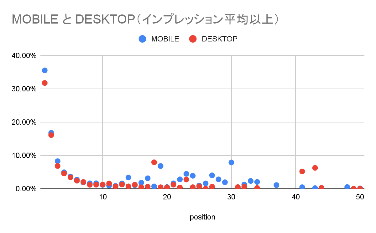 インプレッションが平均以上に絞った場合の1~10位CTR詳細
