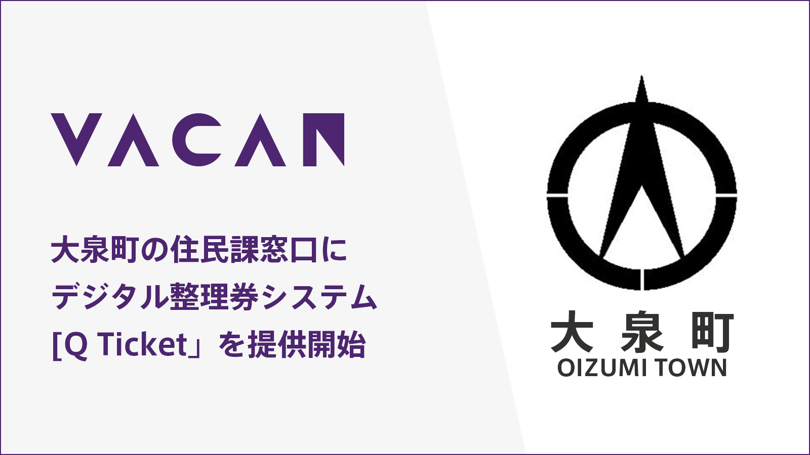 AIとIoTを活用して「待つ」をなくすサービスを提供するスタートアップ、株式会社バカン(東京都千代田区、代表取締役:河野剛進)は、 群馬県大泉町の住民課窓口に、行列に並ばず順番待ちができるデジタル整理券システム「VACAN Q ticket(バカン キューチケット)」(以下、Q ticket)の提供を開始しました。Q ticketを活用することで、その場で並ばずとも利用者のスマートフォンなどから、現在の窓口の待ち状況を確認できるようになり、呼び出されるまでその場で待つ必要がなくなることで、満足度向上が期待できます。