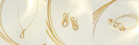 日本で古くから魔除けや人と人を結びつけるとされている「水引」や、幸せを分け与えるという意味を持つ「ラッキーバッグ(福袋)」などのお守りを、EAU DOUCE4℃の世界観で解釈したモダンなジュエリーが揃います。水引の茗荷結びから着想を得た立体美とK10イエローゴールドカラーのリュクスな輝きが魅力のシリーズは、顔周りを華やげ、あなたの毎日に幸運のお守りとして寄り添います。枕のようなふんわりとした四角形のクッションカットのアメシストをラッキーバッグのように包み込んだり、風水で”八方位”を意味する八角形の光穴からアメシストが輝くデザインを施したりと、細部にもこだわりを詰め込み、遊び心を加えました。