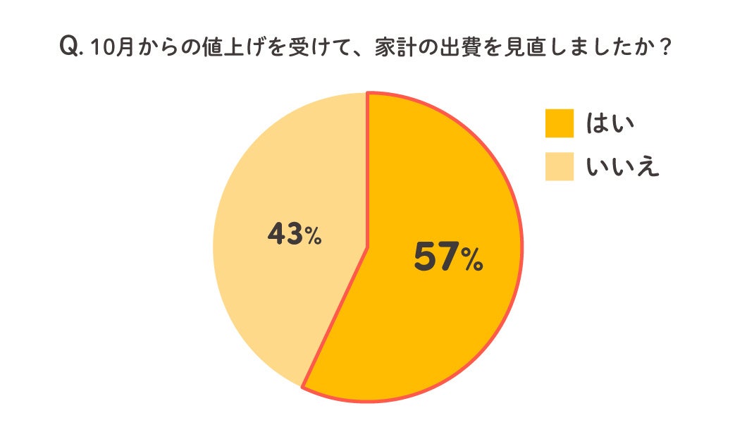 - 回答者の9割以上が食品の値上げを実感し、約6割が「家計を見直した」と回答