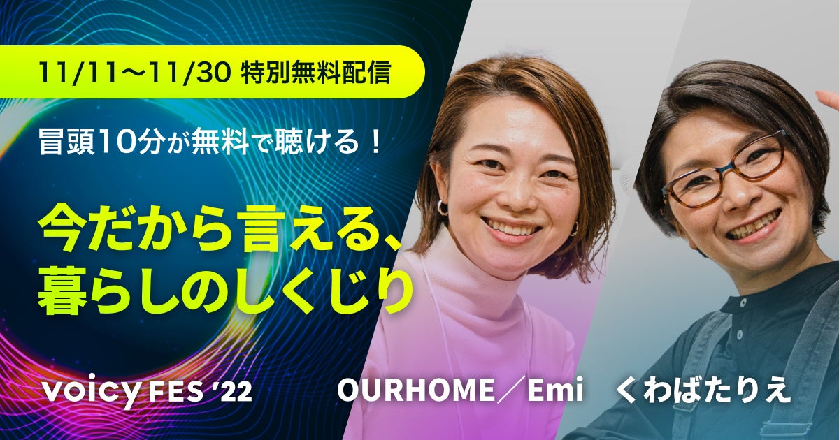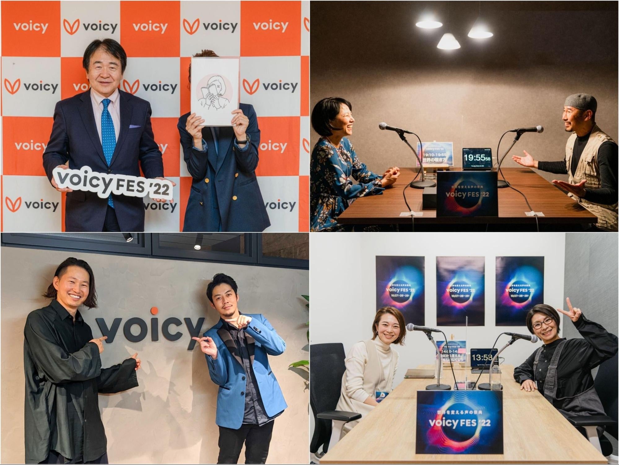 音声プラットフォームVoicyを運営する株式会社Voicyは、“世界を変える声の祭典”「Voicy FES ’22」を2022年10月27日(木)から29日(土)の3日にわたって開催、総勢74名のパーソナリティによる“声で世界を変える”61の対談をお届けしました。二回目の開催となった今年、前回を上回る7,600名を超える方々に有料参加いただくことができました。「Voicy FES ’22」は11月末までアーカイブ放送を配信しています。さらに今回、より多くの方に声の魅力を体感いただくために、人気アーカイブ放送のなかから4つの対談の冒頭を特別に無料公開します。Voicyは声で多くのワクワクを届け、これからも一歩ずつ世界を変えていきます。