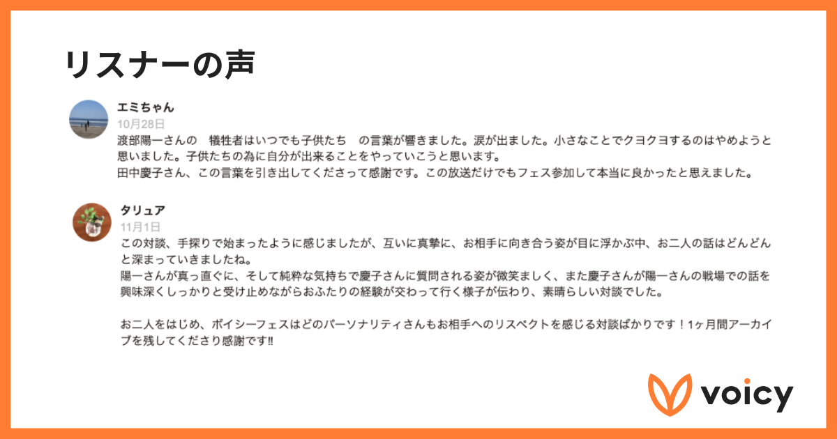 2022年10月12日 あの神対談がまた聴ける!Voicy FES ’22チケット早期購入者特典として、昨年のVoicyフェスを厳選してお届け