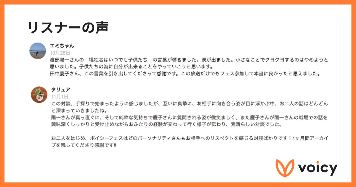 ●Androidアプリ:https://play.google.com/store/apps/details?id=jp.voicy.app.player