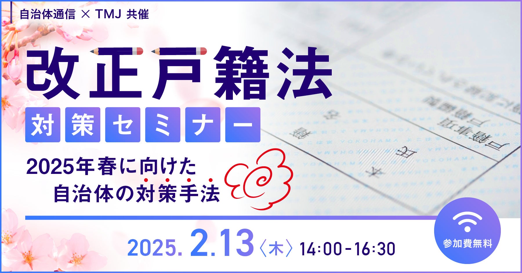 【参加者募集!2025年2月13日(木)開催】自治体通信×TMJ共催「改正戸籍法対策セミナー~2025年春に向けた自治体の対策手法~」を開催します