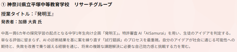また、オンライン環境を活用した教育モデルの展開により、地域や環境に依存しない教育機会の提供を目指すとともに、発明教育のさらなる普及と高度化に取り組んでまいります。